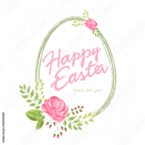 Obraz premium vector hand drawn easter lettering greeting quote with egg and watercolor imitation flowers