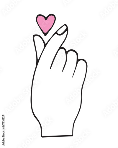 © GORBUSHA, Obraz premium Vector hand drawn hand and heart. Romantic doodle illustration for valentine's day