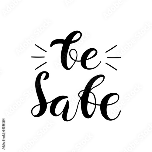 Fototapeta premium Vector hand drawn lettering be safe for self quarantine times, Coronavirus, Covid-19, global problem, protection. Unique art isolated on white background.