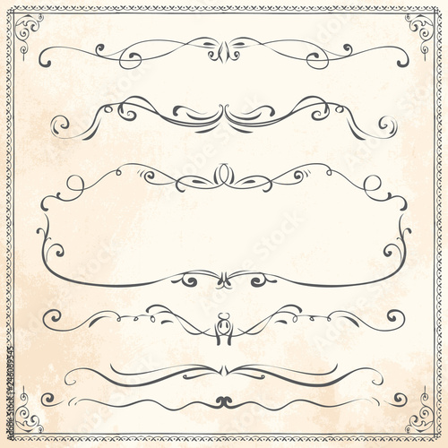 © Eva Kali, Obraz premium Vector hand drawn line border frame sketch design elements set on paper pattern