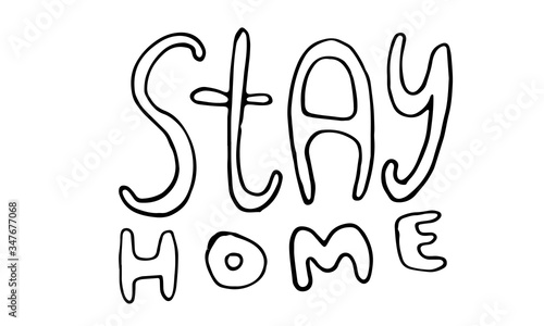 © Ангелина, Obraz premium Vector hand drawn stay home lettering text. Coronavirus prevention phrase. Element for covid-19 banners and posters. Lockdown, quarantine and safe isolation concept.