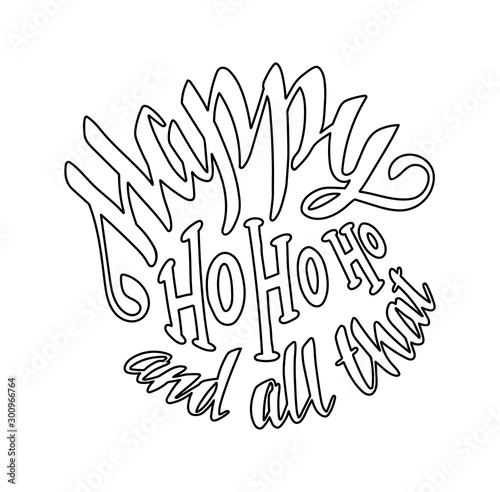 © Ann, Fototapeta premium Vector hand lettering. "Happy Ho Ho Ho and all that" lettering in circle composition. For cards, prints and design.