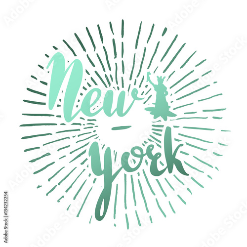 Fototapeta premium Vector handwritten brush script. white letters isolated on background. New York with ray burst