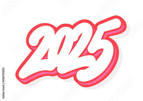 Fototapeta premium 2025. Vector handwritten lettering colorful sticker.