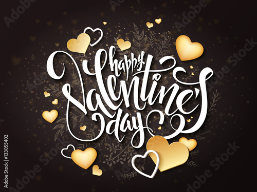 Naklejka premium Vector happy valentines day lettering with golden hearts