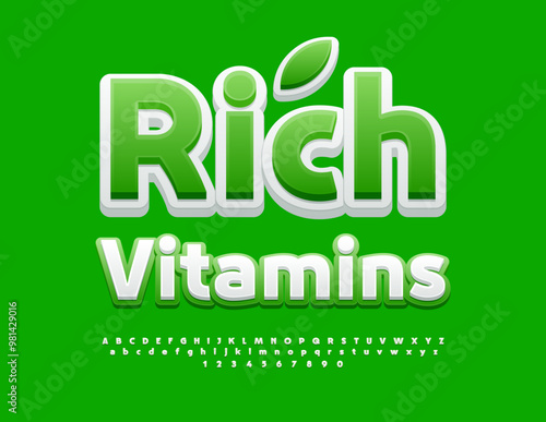 Fototapeta premium Vector healthy logo Rich Vitamins. White and Green Font. Bright Alphabet...