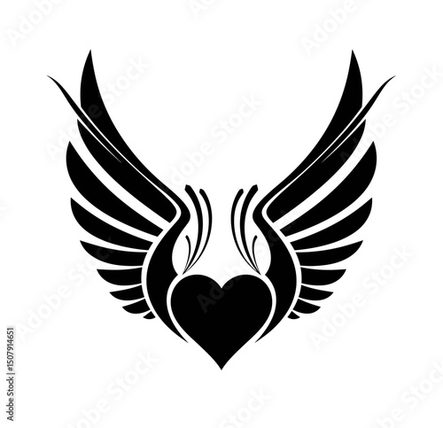 Obraz premium Vector heart shape with stylized wings spreading upwards in a symmetrical...