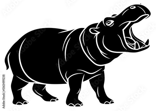 © Prasa-gg, Fototapeta premium Vector hippo silhouette leaning forward with wide open mouth and sharp teeth on white background