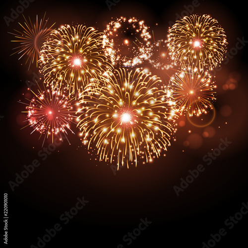 Naklejka premium Vector holiday festival golden firework. Independence day
