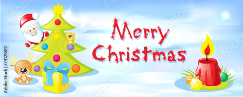 © hanaschwarz, Naklejka premium vector horizontal christmas design with snow and xmas tree