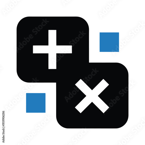 Fototapeta premium Vector icon featuring overlapping blue squares with plus and cross symbols