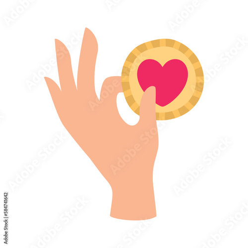 © BRAYAN, Obraz premium vector icon of a hand holding a valentine coin with white background