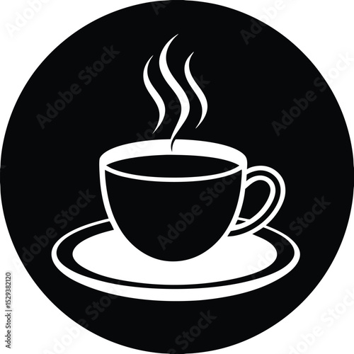 © Monira, Obraz premium Vector Icon of a Steaming Coffee Mug with Saucer vector silhouette illustration