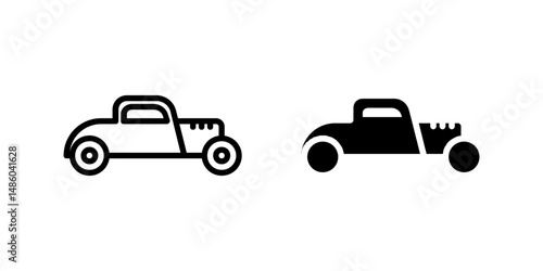 Fototapeta premium Vector icon set featuring hot rod cars, ideal for vintage and racing designs.