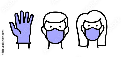 © bioraven, Fototapeta premium Vector icon set male and female, wearing face mask. Man and Woman protection