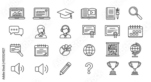 Fototapeta premium Vector icons Set of Collection of Educational and Business Icons Depicting Learning Success and Communication. Vector Illustrations