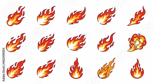 Obraz premium Vector Icons Set of Dynamic Cartoon Fireball and Flame Icons A Vibrant Vector Set. Vector Illustrations. EPS Editable