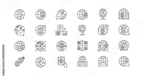 Fototapeta premium Vector Icons Set of Global Communication and Internet Line Icon Set. EPS Editable
