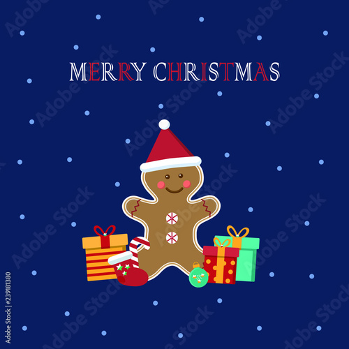 © Kamilla, Fototapeta premium Vector icons with cookies in the shape of a man and gifts with the replacement of the background. Greeting card.