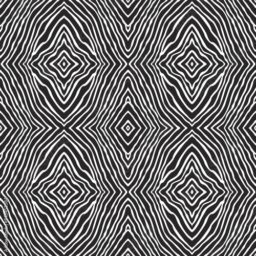 © L. Kramer, Obraz premium Vector ikat seamless pattern from black and white wavy stripes, zebra skin prints