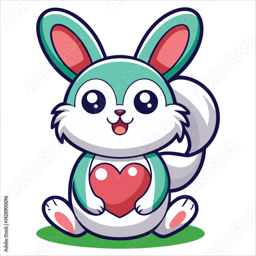 Obraz premium Vector Illustrated Beautiful Rabbit With Heart