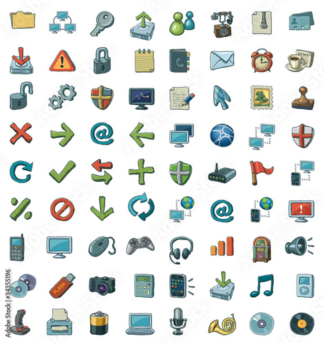 © abdulsatarid, Fototapeta premium Vector illustrated set of 72 artistic hand-drawn icons
