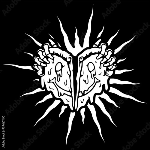 © bagasprnwrdhn, Obraz premium vector illustration artwork of hand tear love pizza smile.