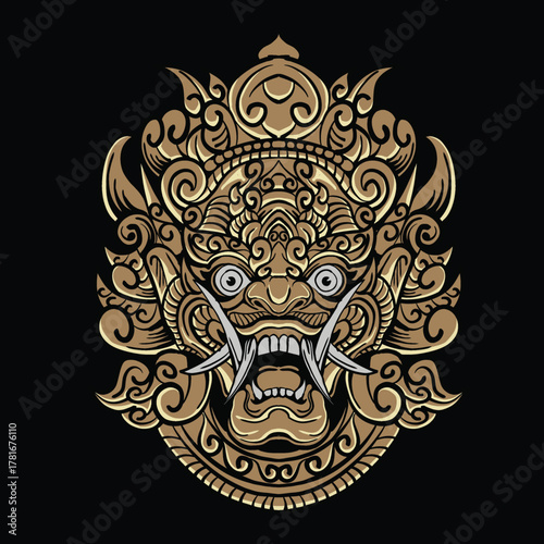 © hafid, Fototapeta premium Vector illustration balinese barong head in gold color