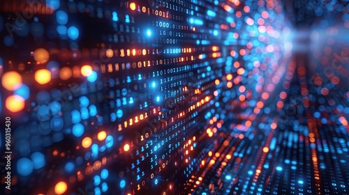 © Pattarin, Obraz premium vector, illustration, blue digital binary data on computer screen