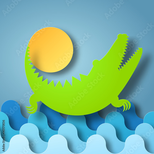 © tpupyku, Fototapeta premium Vector illustration box of shadow Crocodile plays with the Sun in water