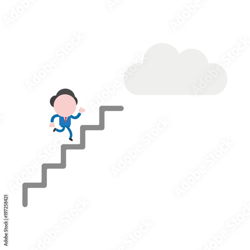 © Emrah_Avci, Obraz premium Vector illustration businessman character running on stairs to reach cloud
