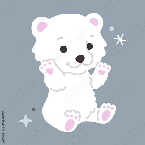 © boyusya, Naklejka premium Vector illustration cute doodle baby polar cub for digital stamp,greeting card,sticker,icon,design