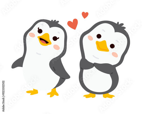 © boyusya, Naklejka premium Vector illustration cute doodle penguins for digital stamp,greeting card,sticker,icon,design
