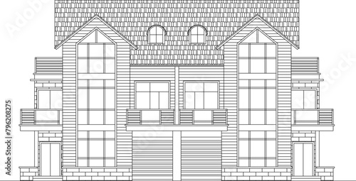 Fototapeta premium vector illustration design sketch architectural drawing of classic house...