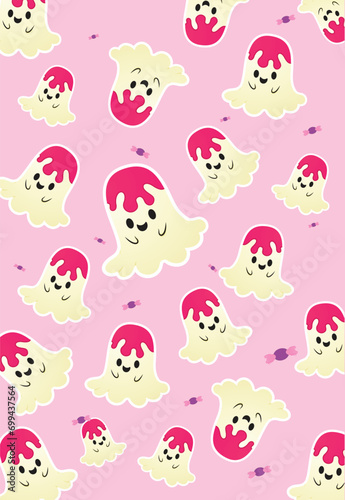 Obraz premium Vector illustration editable cute ghost gift pack or wall pattern template