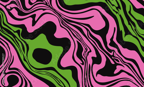Obraz premium Vector illustration features an abstract pattern with flowing, wavy shapes in neon pink, green, and black. The bold, modern design adds a dynamic and playful touch to backgrounds or creative projects.