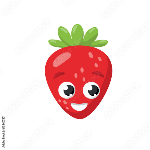 © Dilara, Fototapeta premium Vector Illustration Flat Strawberry Cute Character emotion expression isolated on white background, minimal style, Raw fresh fruit, Product mascot