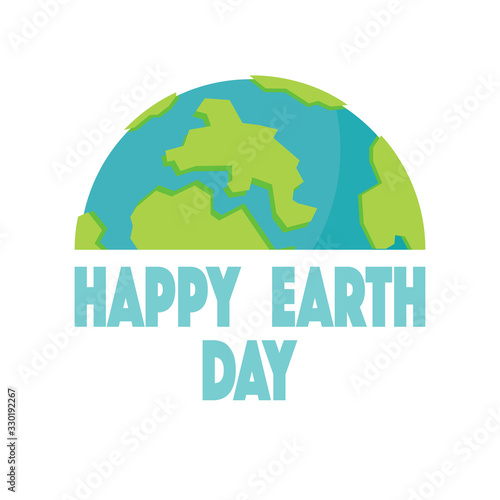 Fototapeta premium Vector illustration greeting card Happy Earth Day, planet Earth with signature