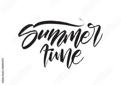 Obraz premium Vector illustration: Handwritten brush type ink lettering of Summer Time on...