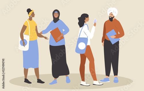 © Viktoria, Obraz premium vector illustration in flat style. young students communicate and discuss their studies