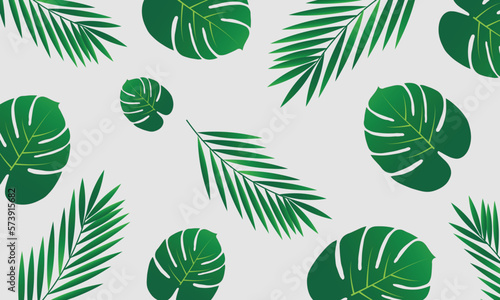 Fototapeta premium Vector illustration in simple flat style. Background with plants and leaves.