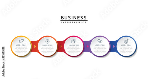 © Rasarin, Naklejka premium Vector illustration, infographics design, template, marketing, information, with 5 options or steps