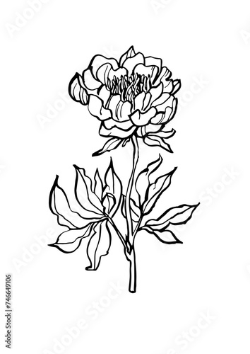 Obraz premium Vector illustration - ink sketch peony flowers branch. Art for for prints,...