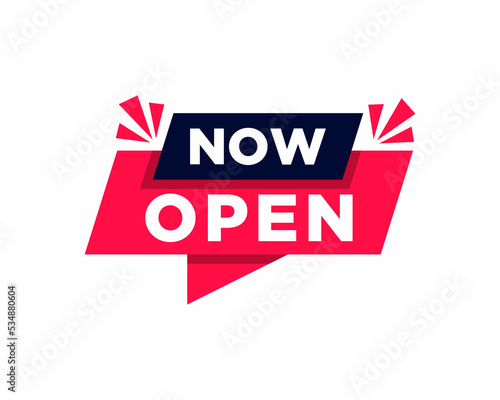 © muh, Obraz premium Vector Illustration Now Open Pin, Now open speech bubble vector