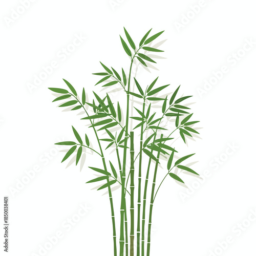 © Bak, Fototapeta premium Vector illustration of a bamboo plant with green leaves and stems, white background