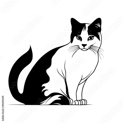 Naklejka premium Vector illustration of a black and white silhouette of a domestic cat