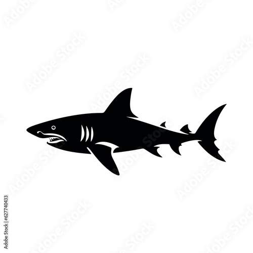 Naklejka premium Vector illustration of a black silhouette shark. Isolated white background. Icon fish shark side view profile.