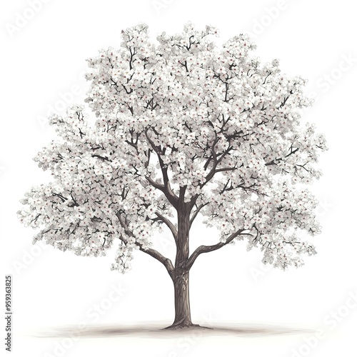 © Thanthara, Obraz premium Vector illustration of a cherry tree on a white background. Suitable for crafting and digital design projects.[ --v 6.1 Job ID: ecaf7eff-69ee-4cb9-8bb7-44d7961bd975