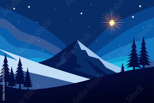 © Volanath, Fototapeta premium vector illustration of a christmas landscape