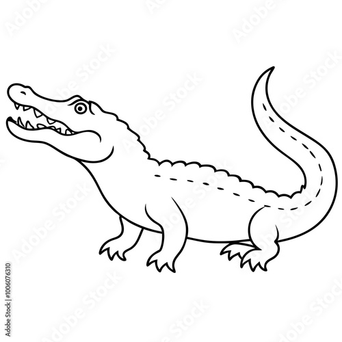 © Bappaditya Roy, Naklejka premium Vector illustration of a crocodile on land with an open mouth ready to strike